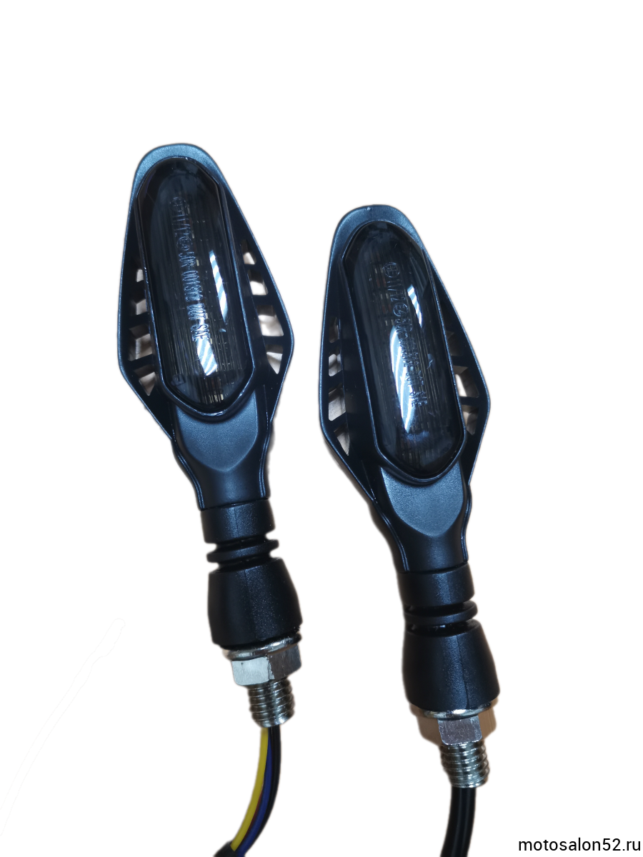 Поворотники светодиодные LED #6 2 шт.черный абажур, красный свет+желтые текущие поворотники