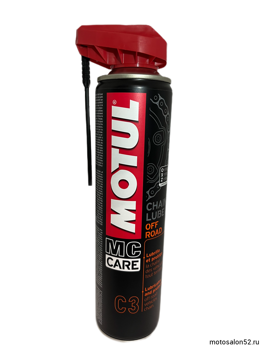 Специально рекомендован для внедорожных мотоциклов: MOTUL Chain Lube Off Road не провоцирует прилипания земли и песка.