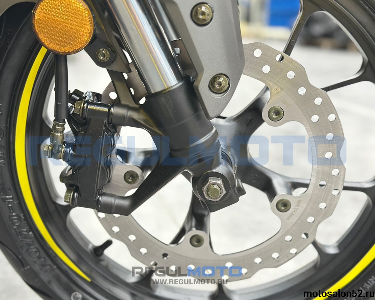 Колеса: 110/70-17 (перед), 140/70-17 (зад) — уверенное сцепление.