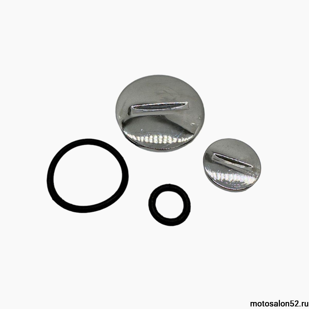 Комплект заглушек (2 шт.) левой крышки (ротора генератора) двигателя декоративная для мопеда Альфа Дельта 139FMB 147FMH 152FMH и им подобных. Комплект с уплотнительными резинками.