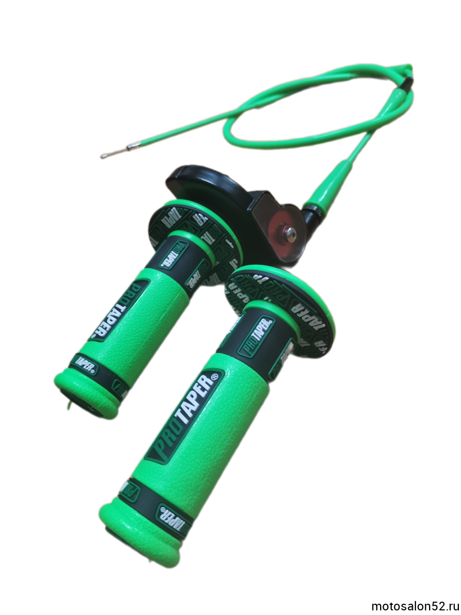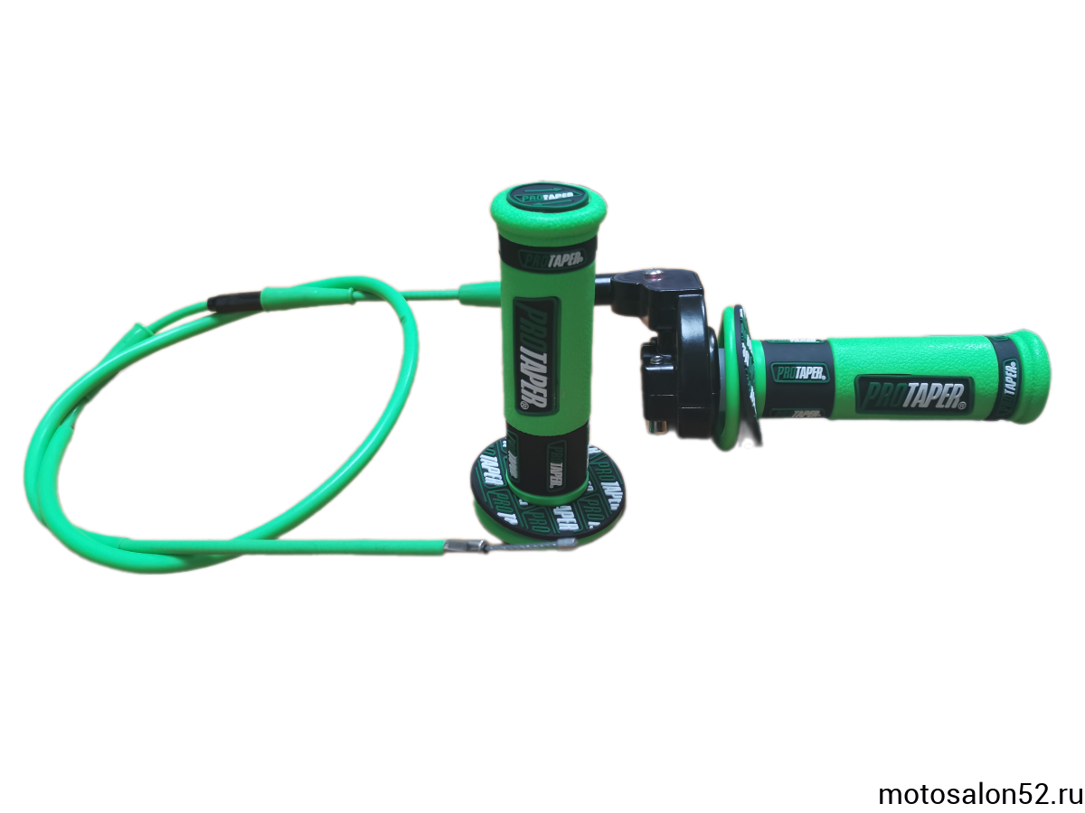 Комплект: короткоходная ручка, грипсы Protaper, трос газа L=980мм (в зеленом цвете) на питбайк, мопед, мотоцикл. Короткоходная ручка, грипсы и трос газа идеально подходят для улучшения управления мото. Эти качественные мототовары обеспечивают надежную работу и долговечность при использовании.