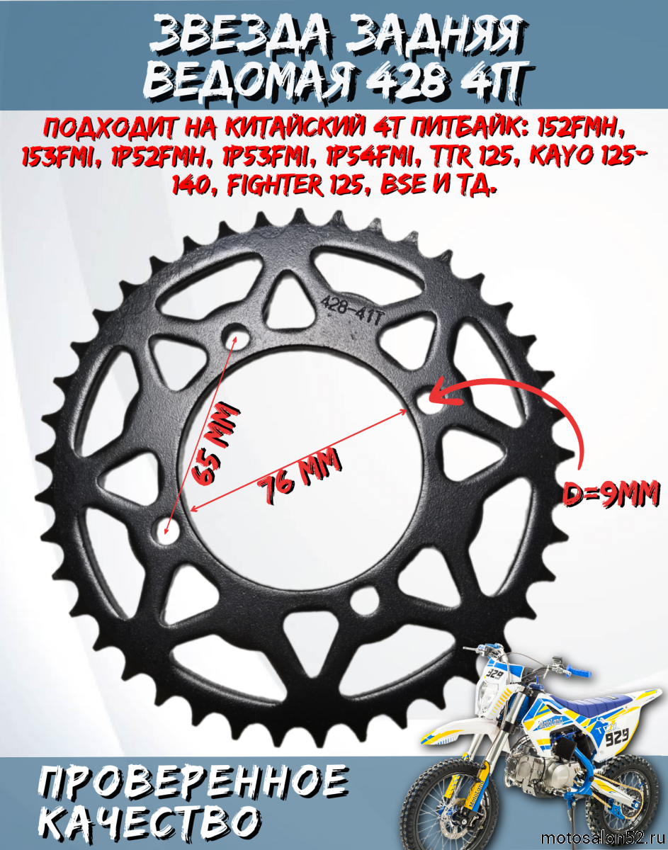 Уникальная задняя звездочка Звезда ведомая - идеальное решение для вашего питбайка TTR 125, TTR 125, KAYO 125-140, Кайо 125, Кайо 140, Ирбис ТТР 125 Р, Мотоленд XR 125,