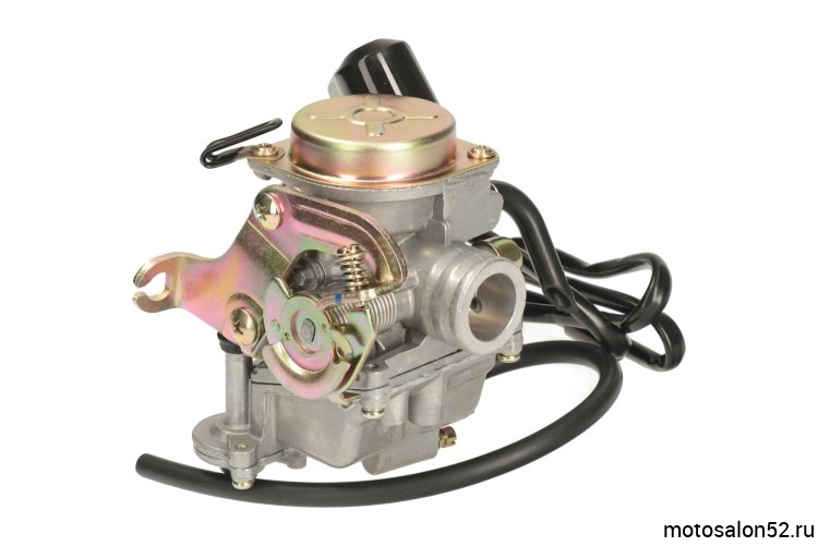 Карбюратор в сборе с электроклапаном для китайского скутера (мопеда) с четырехтактным двигателем 139 QMB, 139QMA и объемом от 50 до 110 куб.см. Карбюратор с электроклапаном на китайский мопед с четырехтактным мотором 139 QMB с объемом двигателя от 50 до 100 кубических сантиметров имеет следующие характеристики: Длина провода ЭКК: 60 см Внешний диаметр впускного диффузора, связанного с воздушным фильтром: 38 мм Внутренний диаметр выпускного диффузора: 18 мм Этот тип карбюратора часто встречается на следующих моделях скутеров: Viper Wind Racer Meteor IRBIS Z50R Viper Grand PRIX Honling Joker QT-7 ЗиД Lifan LF50QT-8A RACE WOLF RC 50QT-3B NAVIGATOR E-MOTO XJ 50QT-5 JIEDA JD 50QT-4ABooster Fabius Legend Wind ZipR3 Mustang Spark Keeway
